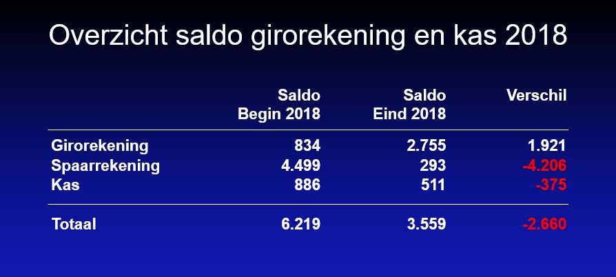Aan het begin van 2018 was het totale saldo € 6.219. Aan het eind van 2018 is het totale saldo